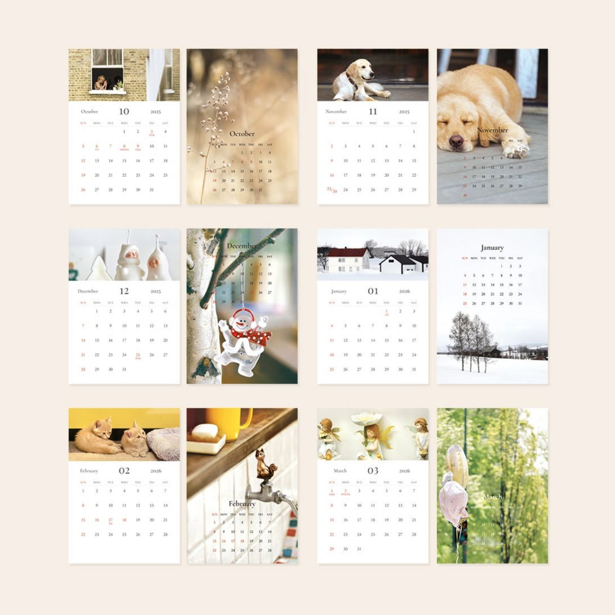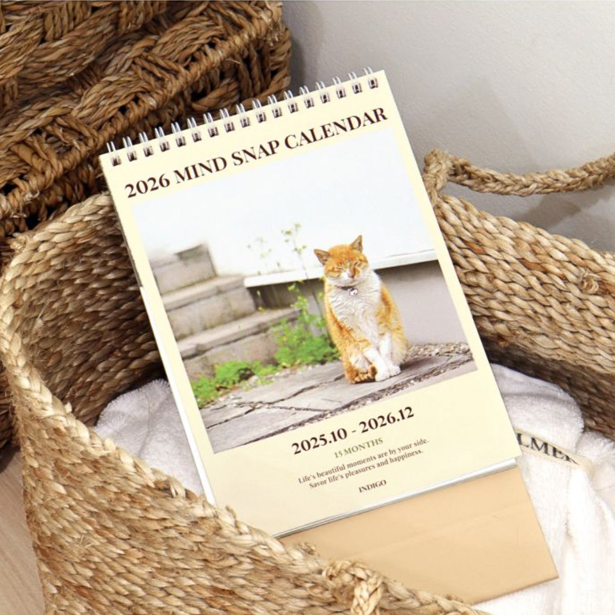 Cada mes trae nuevas historias visuales: el susurro del oleaje veraniego, jardines en flor, un helado derritiéndose al sol, los árboles despertando en primavera, fuentes que susurran, gatos en poses caprichosas… El Calendario 2026 Mind Snap transforma tu escritorio en una galería personal donde cada mes te invita a respirar, soñar y planear. Al mirar las fotos en su cara superior, sientes el cambio de estación; y al usar la imagen que llena toda la página en el reverso, puedes ambientar tu espacio con la atmósfera que se adapte mejor a ti.